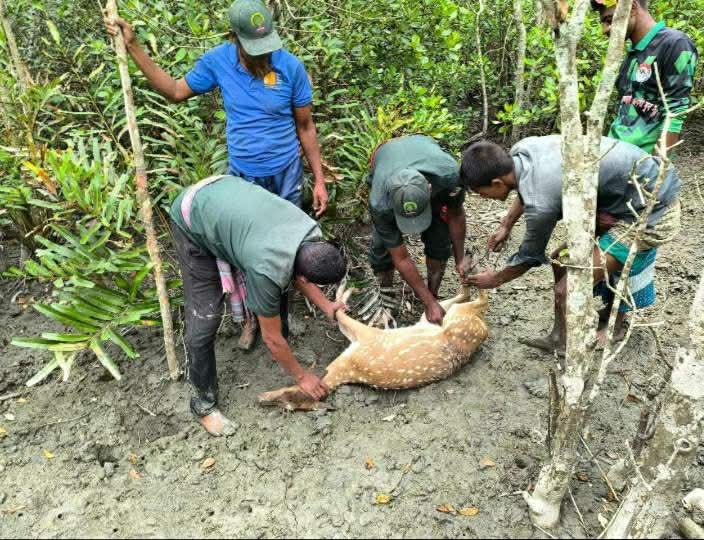 সতর্ক এবং সজাগ অবস্থানে রয়েছে বনবিভাগ।উপকূলীয় দরিদ্র জনগোষ্ঠীর মানবতায় যেটুকু সম্ভব সেটুকু মানানসই। ছবিটি বিগত দিনের হরিণ শিকারিদের হাত থেকে উদ্ধার মুহূর্ত। সম্প্রতি সাবেক সংসদ গাজী নজরুল ইসলাম দরিদ্র হতদরিদ্র জেলে বাওয়ালিদের প্রতি সদয় ব্যবহার করার আহ্বান জানিয়েছেন।।।