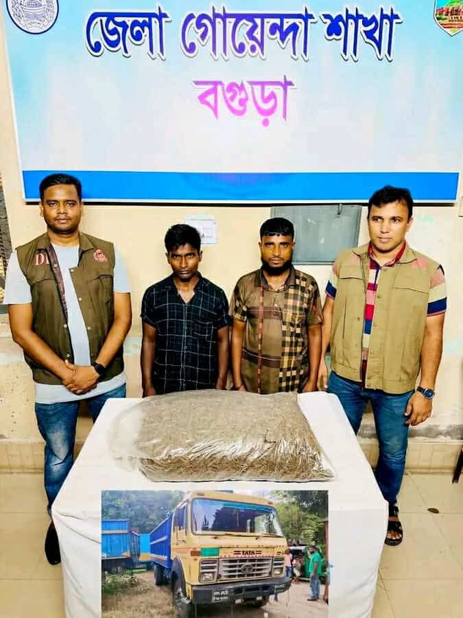 বগুড়ায় জেলা গোয়েন্দা (ডিবি) পুলিশের মাদকবিরোধী বিশেষ অভিযানে ১০ কেজি গাঁজাসহ দুজন মাদক ব্যবসায়ীকে গ্রেফতার করেছে ডিবি পুলিশ। এ সময় মাদক বহনকারী একটি ট্রাক জব্দ করা হয়েছে।