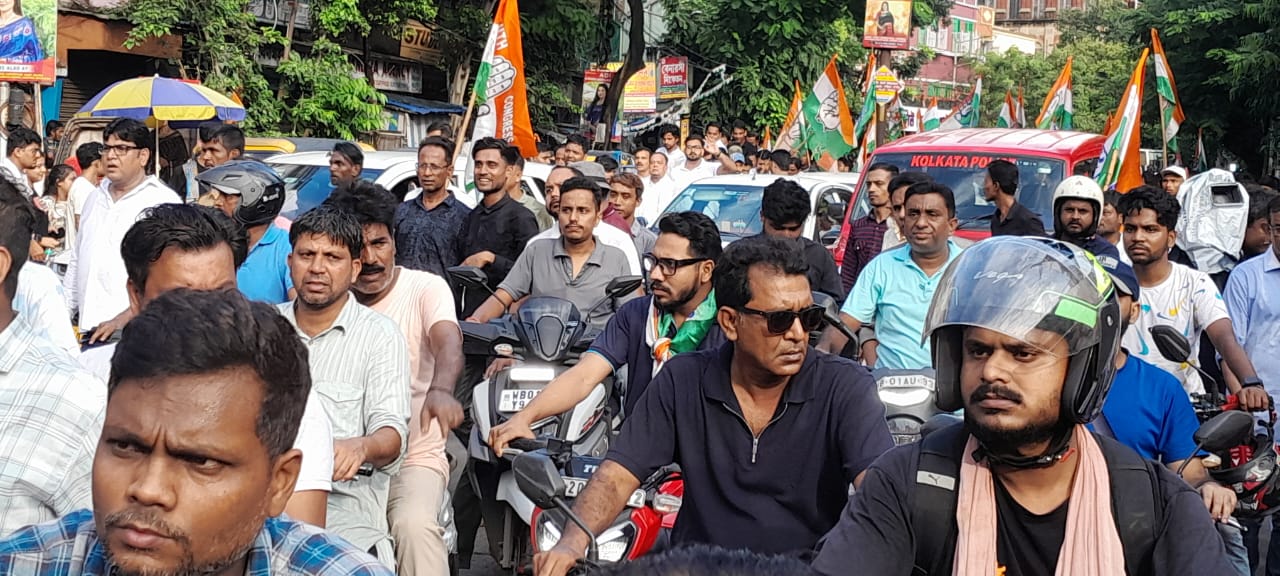 বিধান ভবনে একটি সাংবাদিক সম্মেলনের পর, কয়েকশো সদস্য নিয়ে বিধান ভবন থেকে কলেজটির পর্যন্ত বিজেপি আর.এস এর বিরুদ্ধে প্রতিবাদ জানিয়ে এই মহা মিছিল করলেন।, মিছিলের প্রথম ভাগে ছিল বেশ কিছু বাইক মিছিল। বিভিন্ন জেলা থেকে প্রদেশ কংগ্রেসের সদস্যরা এই মিছিলে পাওয়া মেলান,