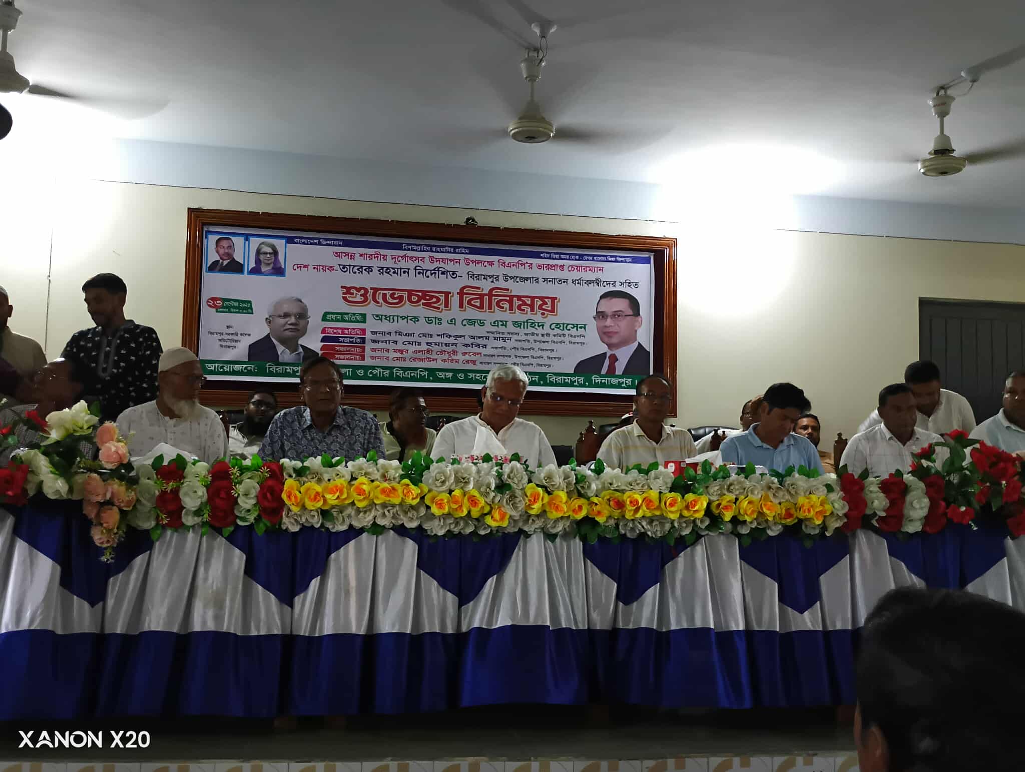 এমডি রেজওয়ান আলী বিরামপুর (দিনাজপুর)-দিনাজপুরের বিরামপুরে আসন্ন শারদীয় দুর্গোৎসব উপলক্ষে বাংলাদেশ জাতীয়তাবাদী দল (বিএনপি) সনাতন ধর্মাবলম্বীদের সাথে এক মতবিনিময় সভা ও শুভেচ্ছা বিনিময়ের আয়োজন করে। বিএনপি'র ভারপ্রাপ্ত চেয়ারম্যান তারেক রহমানের নির্দেশে মঙ্গলবার (২৩ সেপ্টেম্বর-২৫) সন্ধ্যায় উপজেলা পরিষদ অডিটোরিয়ামে এই সভাটি অনুষ্ঠিত হয়। আয়োজনে ছিলেন,বিরামপুর উপজেলা ও পৌর বিএনপি এবং অঙ্গ ও সহযোগী সংগঠন। উক্ত সভায় সভাপতিত্ব করেন বিরামপুর উপজেলা বিএনপি'র সভাপতি মিঞা শফিকুল আলম মামুন। সভার সঞ্চালনায় ছিলেন পৌর বিএনপি'র সাধারণ সম্পাদক রেজাউল করিম রেজু। প্রধান অতিথি হিসেবে উপস্থিত ছিলেন বিএনপি'র জাতীয় স্থায়ী কমিটির সদস্য অধ্যাপক ডাঃ এ জেড এম জাহিদ হোসেন। উক্ত অনুষ্ঠানে আরও উপস্থিত ছিলেন বিএনপি'র কেন্দ্রীয় নির্বাহী কমিটির সহ-সাংগঠনিক সম্পাদক আব্দুল খালেক,পৌর বিএনপি'র সভাপতি হুমায়ুন কবির,উপজেলা বিএনপির সাধারণ সম্পাদক মঞ্জুর এলাহী চৌধুরী রুবেল,সাংগঠনিক সম্পাদক নূরে আলম নূরা,উপজেলা যুবদলের সদস্য সচিব এ্যাডভোকেট মিঞা শিরন আলম,পৌর স্বেচ্ছাসেবক দলের আহবায়ক আব্দুর রব তোতা, উপজেলা ছাত্রদলের আহবায়ক আসাদুজ্জামান বাবু,সাধারণ সম্পাদক আবদুল্লাহ নোমান এবং স্থানীয় ইউনিয়ন পরিষদ চেয়ারম্যানগণ। এছাড়াও বিভিন্ন পূজা মন্ডপের সভাপতি ও সম্পাদকসহ বিএনপি, যুবদল,স্বেচ্ছাসেবক দল,শ্রমিক দল ও ছাত্রদলের নেতাকর্মীরা উপস্থিত ছিলেন। সভায় সনাতন ধর্মাবলম্বী সম্প্রদায়ের নেতৃবৃন্দ,বাংলাদেশ পূজা উদযাপন পরিষদের উপজেলা শাখার সভাপতি শিশির কুমার সরকার, সাধারণ সম্পাদক শান্ত কুমার কুন্ডু এবং পৌর শাখার সভাপতি বিপ্লব কুমার দাস ও সাধারণ সম্পাদক উত্তম কুমার দাস বক্তব্য রাখেন। এছাড়াও বাংলাদেশ হিন্দু বৌদ্ধ খ্রিষ্টান কল্যাণ ফ্রন্টের উপজেলা শাখার সভাপতি উজ্জ্বল কুমার এবং সাধারণ সম্পাদক পবন কুমার শীল বক্তব্য প্রদান করেন।