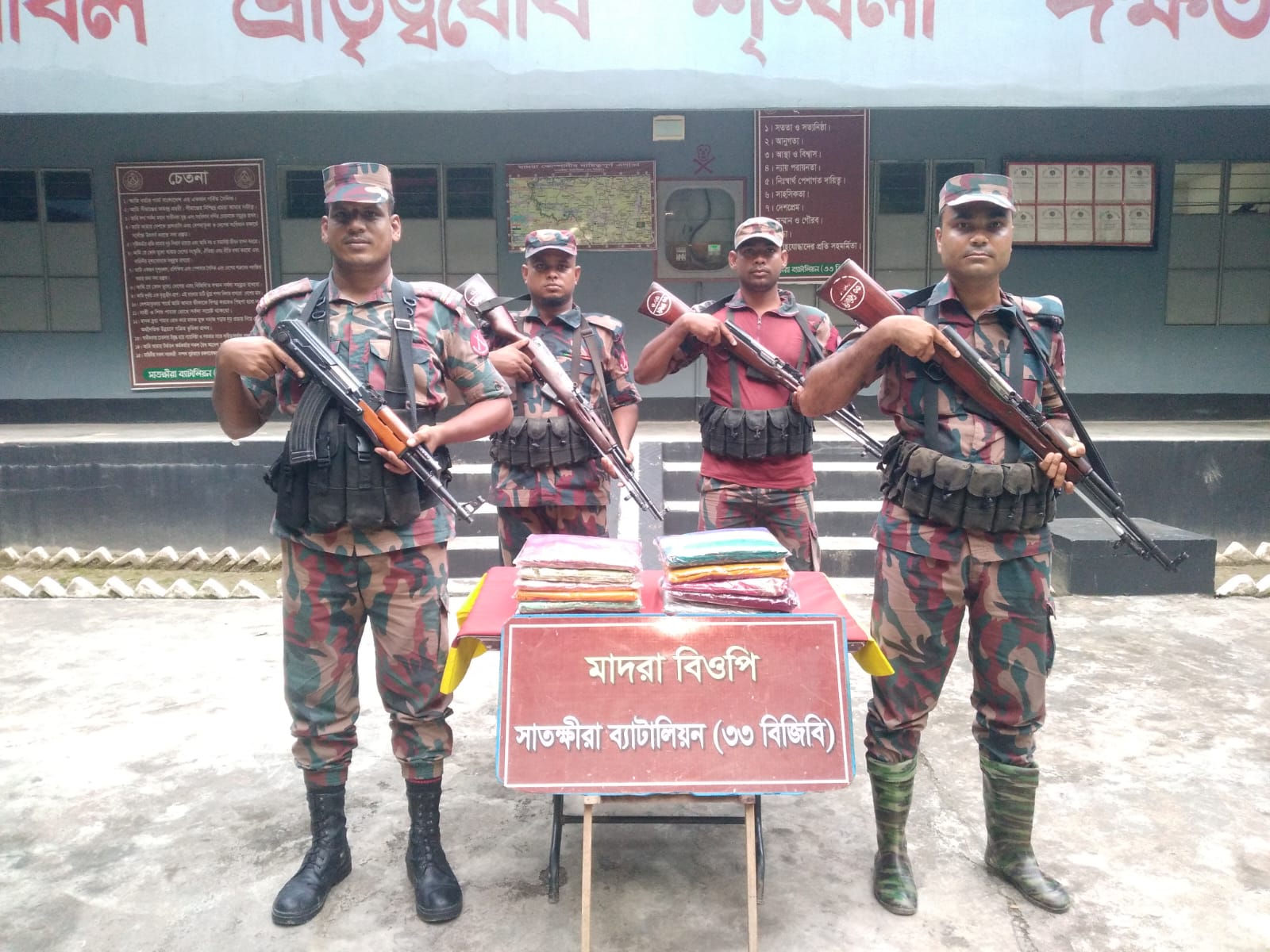 সাতক্ষীরা ও কলারোয়া সীমান্তে মাদক বিরোধী বিশেষ অভিযান পরিচালনা করে ২০ বোতল ভারতীয় মদসহ প্রায় আট লক্ষ টাকার ভারতীয় মালামাল জব্দ করেছে বিজিবি