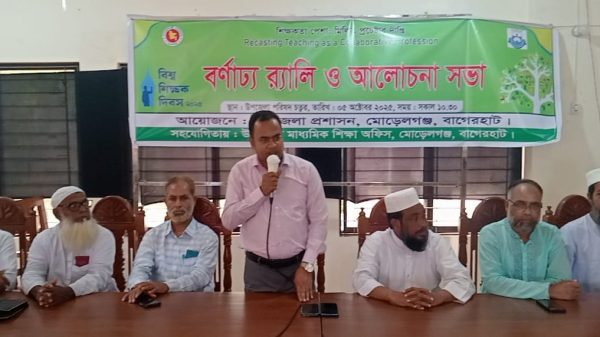 মোরেলগঞ্জ প্রতিনিধিঃ “শিক্ষকতা পেশা মিলিত প্রচেষ্টার দীপ্তি”প্রতিপাদ্য বিষয় নিয়ে বাগেরহাটের মোরেলগঞ্জে বিশ্ব শিক্ষক দিবস-২০২৫ উদযাপন উপলক্ষে র্যালি আলোচনা সভা অনুষ্ঠিত হয়েছে। এ উপলক্ষে আজ রবিবার ৫ অক্টোবর সকাল ১০ টায় ...বিস্তারিত পড়ুন