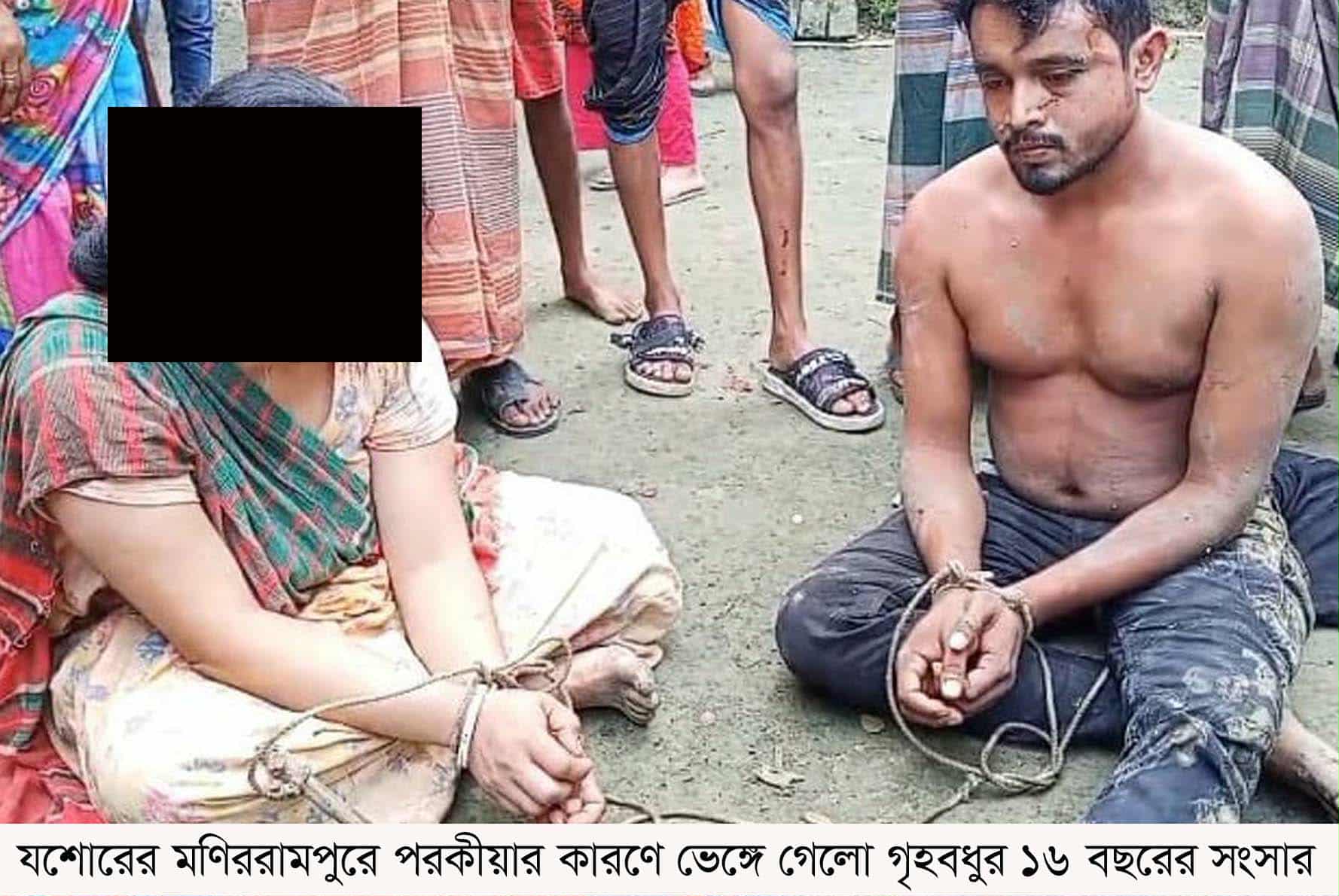 যশোরের মণিরামপুরে ফেসবুকে পরিচয় হয়ে প্রেমের একমাস পর অনৈতিক কর্মকান্ডের সময় স্বামীর হাতে আটক হয়েছে গৃহবধু ও তার কথিত প্রেমিক রাকেশ হৃদয়। আটকের পর স্ত্রী ও তার প্রেমিককে বেঁধে মারপিটও করা হয়। পরে স্থানীয় সালিশি সভায় স্ত্রীকে তালাক দেওয়ার ঘোষনা দিয়ে তাদের অভিভাবকদের হাতে তুলে দেন। আর এ ঘটনা ঘটেছে রোববার বিকেলে উপজেলার হরিদাসকাটি গ্রামে। ঘটনাটি এলাকায় ব্যাপক চাঞ্চল্যের সৃষ্টি হয়েছে।
