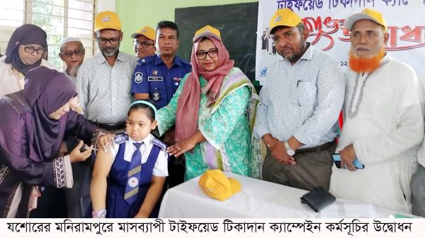 নূরুল হক, মণিরামপুর (যশোর) প্রতিনিধি: সরকারী সিদ্ধান্ত অনুযায়ী সারা দেশের ন্যায় যশোরের মণিরামপুরে মাসব্যাপী টাইফয়েড টিকাদান ক্যাম্পেইন কর্মসূচির উদ্বোধন করা হয়েছে। রবিবার সকালে মণিরামপুর উপজেলা স্বাস্থ্য কমপ্লেক্সের পৌরসভা মনিরামপুর প্রভাতী