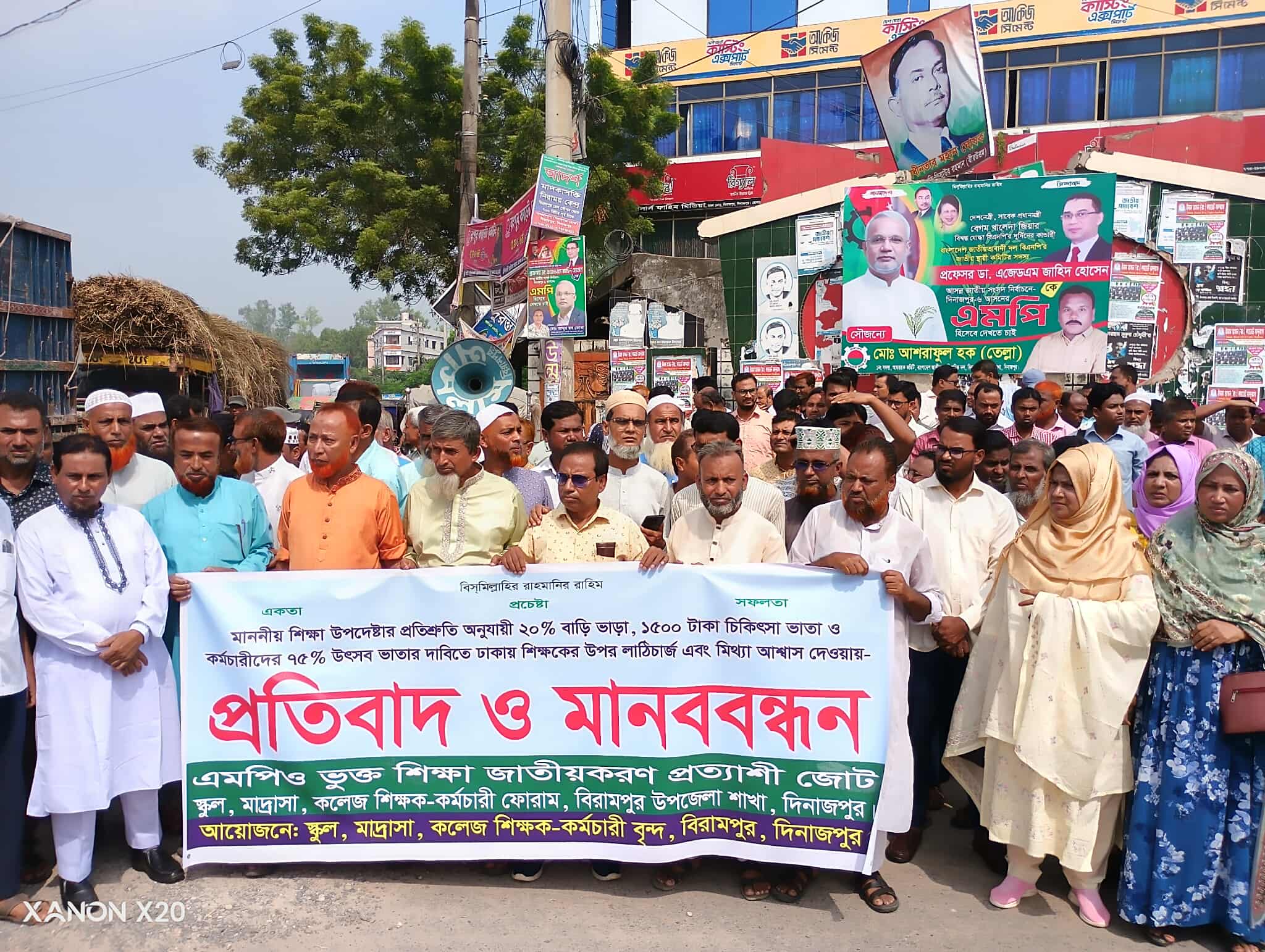 সাধারণ সম্পাদক মোঃ গোলজার হোসেন,ভবানীপুর দাখিল মাদ্রাসা, বিরামপুর,দিনাজপুর। এছাড়াও উপজেলার বিভিন্ন স্কুল,মাদ্রাসা ও কলেজের শিক্ষক-শিক্ষিকাগণ অংশগ্রহণ করেন। ঢাকা মোড় চত্বর থেকে মানববন্ধন শেষে এক বিক্ষোভ র্যালি বের হয়। র্যালিটি শহরের প্রধান সড়ক প্রদক্ষিণ করে উপজেলা পরিষদ চত্বরে গিয়ে শেষ হয়। পরে শিক্ষক-কর্মচারীদের একটি প্রতিনিধি দল উপজেলা নির্বাহী কর্মকর্তার মাধ্যমে সরকারের কাছে তাদের ন্যায্য দাবিগুলোর বাস্তবায়নের জন্য স্মারকলিপি প্রদান করেন। দাবি বাস্তবায়নে দ্রুত পদক্ষেপ নেওয়ার আহ্বান জানান বক্তারা এবং শিক্ষাক্ষেত্রে ন্যায্য প্রাপ্য নিশ্চিত না হওয়া পর্যন্ত আন্দোলন অব্যাহত রাখার ঘোষণা দেন।