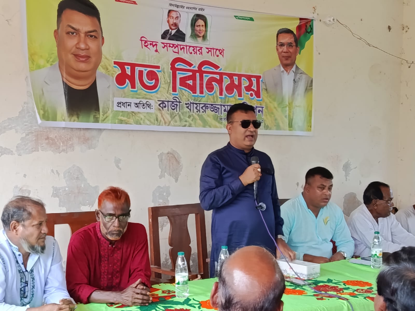 কাজী খায়রুজ্জামান শিপন হিন্দু সম্প্রদায়ের উদ্দেশ্যে বলেন ধর্ম যার যার এদেশ আমাদের সকলের। জাতীয়তাবাদী দল একটি অসাম্প্রদায়িক দল। আপনারা নির্ভয়ে আপনাদের এলাকায় বসবাস করবেন। আপনাদের জমা জমি, বাড়ি ঘর, ঘের আপনারা ভোগ দখল করবেন। যেকোনো ধরনের হুমকি ধামকি চাঁদাবাজি, জবরদখল, ঘের দখল করলে গোপনে আমাকে জানাবেন। তিনি আরো বলেন আমার দলের লোক, নেতাকর্মী, আপনজন এমনকি আত্মীয় স্বজন এই ধরনের কাজের সম্পৃক্ত থাকলে গোপনে আমাকে জানাবেন আমি কঠোর হস্ত দমন করবো মর্মে হুঁশিয়ারি উচ্চারণ করে। এ দেশ আমার আপনার আমাদের সকলের। আমরা সকলের সৌহার্দ্যপূর্ণ পরিবেশে একত্রে বসবাস করবো।