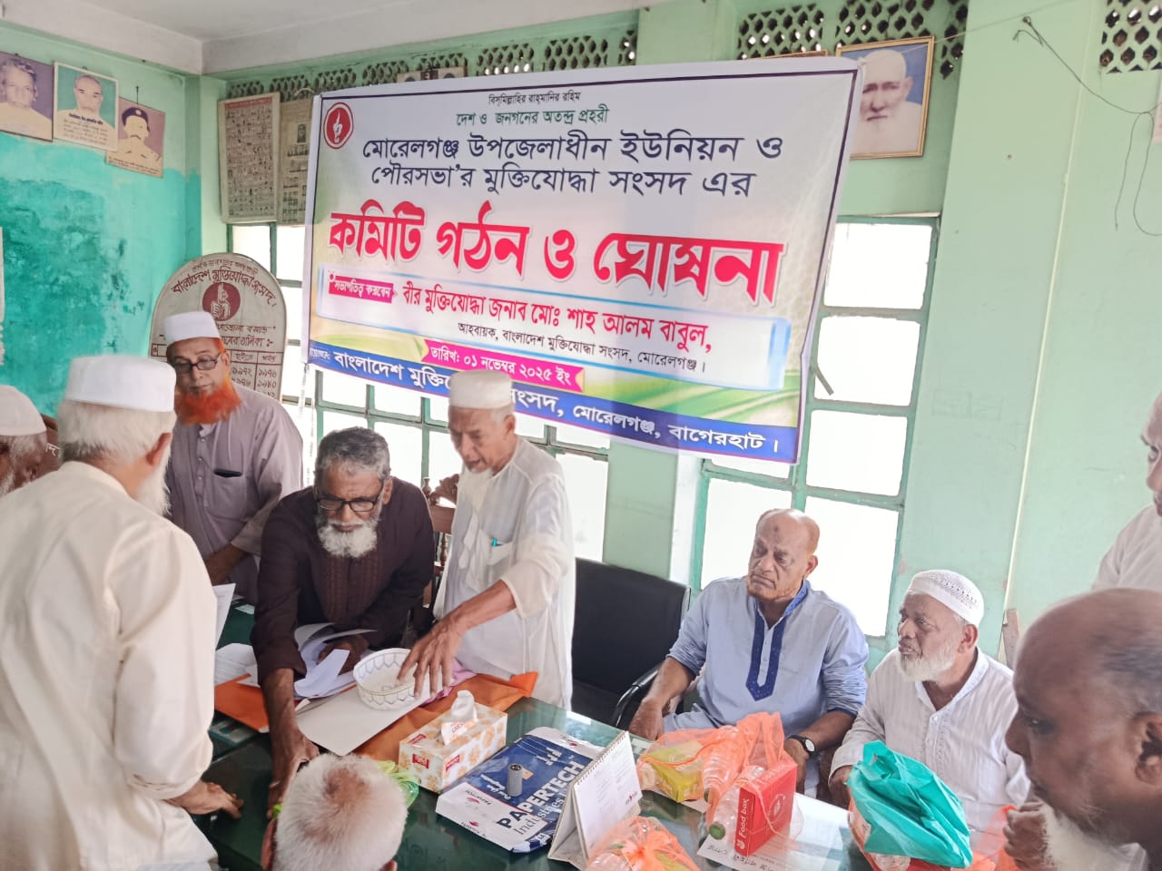 বাগেরহাটের মোরেলগঞ্জ উপজেলার ইউনিয়ন ও পৌরসভার মুক্তিযোদ্ধা সংসদের নতুন আহ্বায়ক কমিটি গঠন করা হয়েছে।