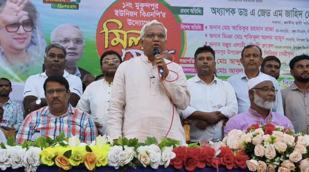 দিনাজপুরের বিরামপুর উপজেলার মুকুন্দপুর ইউনিয়ন বিএনপি'র আয়োজনে বৃহস্পতিবার (৩০ অক্টোবর) বিকেলে মুকুন্দপুর ইউনিয়ন বিএনপির সভাপতি আব্দুল হাকিম মন্ডলের সভাপতিত্বে এবং সাধারণ সম্পাদক ও ইউপি চেয়ারম্যান আবুল কালাম আজাদের সঞ্চালনায় মুকুন্দপুর মাদ্রাসা মাঠে অনুষ্ঠিত মুকুন্দপুর ইউনিয়নবাসীর মিলন মেলায় প্রধান অতিথির বক্তব্যে দিনাজপুর-৬ সংসদীয় আসনে বিএনপি'র সম্ভাব্য জাতীয় সংসদ সদস্য প্রার্থী অধ্যাপক ডা. এ জেড এম জাহিদ হোসেন এসব কথা বলেন।