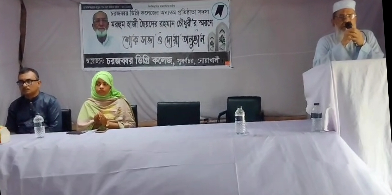নোয়াখালী সুবর্ণচর উপজেলার ঐতিহ্যবাহী শিক্ষা প্রতিষ্ঠান, চরজব্বর ডিগ্রি কলেজের প্রতিষ্ঠাতা সদস্য, মরহুম হাজী সৈয়দের রহমান চৌধুরী'র স্বরণে শোকসভা ও দোয়া মাহফিলের আয়োজন করেছে কলেজ কতৃপক্ষ।