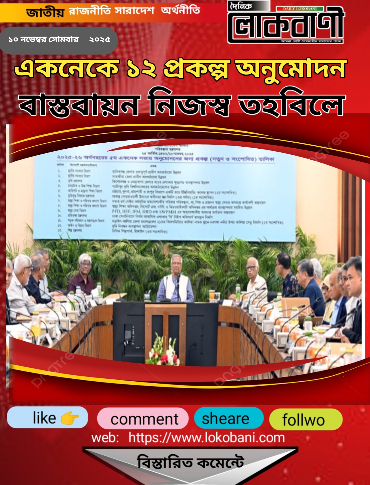 চলতি অর্থবছর (২০২৫-২৬)-এর পঞ্চম একনেক সভায় এই অনুমোদন দেওয়া হয়। আজ পরিকল্পনা কমিশন প্রাঙ্গণে এনইসি সম্মেলনকক্ষে অনুষ্ঠিত এ বৈঠকে সভাপতিত্ব করেন প্রধান উপদেষ্টা ও একনেক -এর চেয়ারপার্সন অধ্যাপক ড. মুহাম্মদ ইউনূস।
