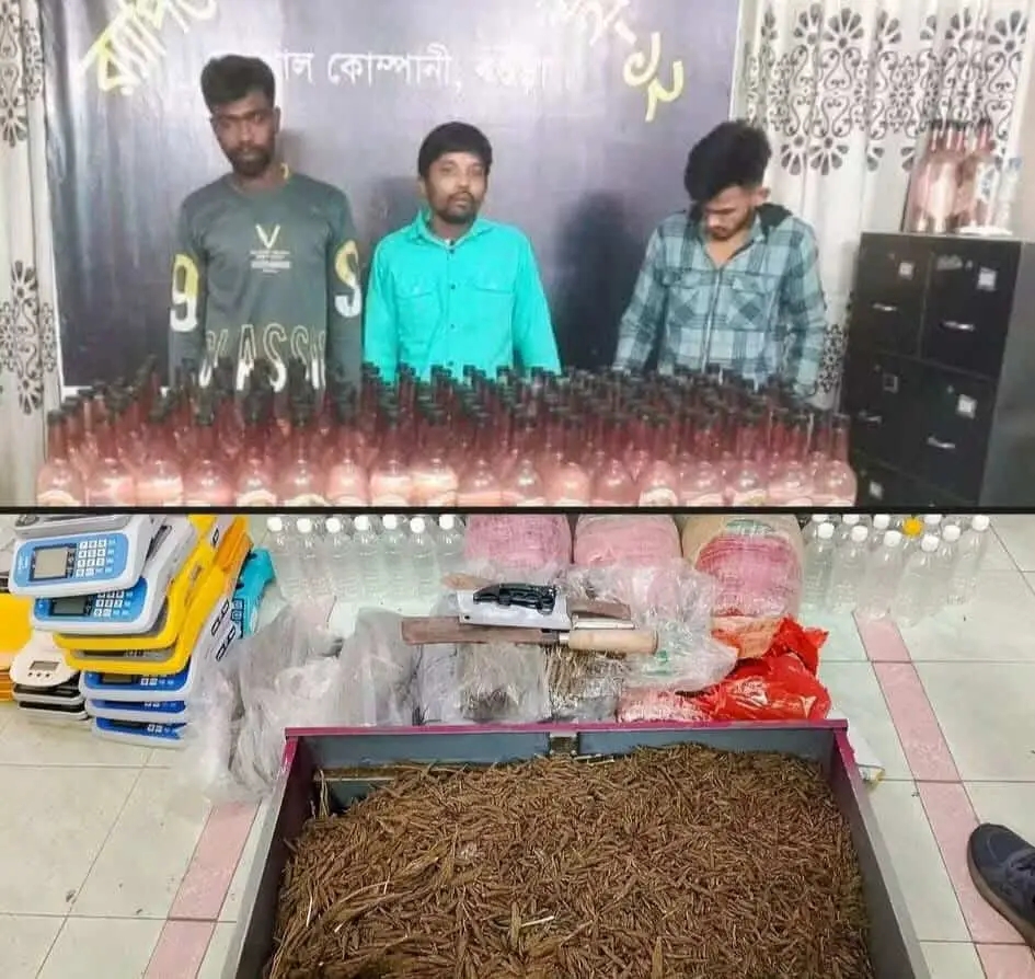 বগুড়া, র্যাব-১২ ও যুব উন্নয়ন আর্মি ক্যাম্প বগুড়া ৪০ বীর এর যৌথ অভিযানে ৪৪ কেজি ১০০ গ্রাম গাঁজা, ৮ পিচ ইয়াবা ট্যাবলেট, ১৭৯ লিটার কেরু মদ, ১৭.২ লিটার দেশীয় মদসহ ৩ জন মাদক ব্যবসায়ী গ্রেফতার।