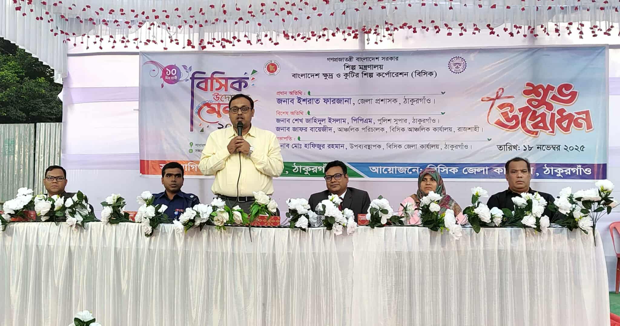 ঠাকুরগাঁওয়ে উৎসবমুখর পরিবেশে শুরু হয়েছে ১০ দিনব্যাপী বিসিক উদ্যোক্তা মেলা। এবার মেলায় হস্ত ও কারুশিল্পের প্রায় ৬০টি স্টল স্থান পেয়েছে, যেখানে স্থানীয় উদ্যোক্তারা নিজেদের উৎপাদিত পণ্য প্রদর্শন ও বিক্রি করছেন।