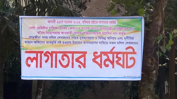আজহারুল ইসলাম সাদী, সিনিয়র স্টাফ রিপোর্টারঃ সাতক্ষীরা সদর সাব রেজিষ্ট্রি অফিসের দুর্নীতিবাজ অফিস সহায়ক মহাসিন খানকে অনাত্র বদলির দাবীতে সকল প্রকার রেজিষ্ট্রি কার্যক্রম থেকে বিরত থাকার জন্য সদর দলিল ...বিস্তারিত পড়ুন