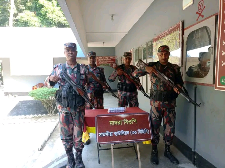 ২১ নভেম্বর ২০২৫ তারিখ সাতক্ষীরা ব্যাটালিয়ন (৩৩ বিজিবি) এর অধীনস্থ বৈকারী, তলুইগাছা, কাকডাঙ্গা, মাদরা, সুলতানপুর ও চান্দুরিয়া বিওপি এর দায়িত্বপূর্ণ এলাকায় চোরাচালান বিরোধী বিশেষ অভিযান পরিচালনা করে সাড়ে পাঁচ লক্ষাধিক টাকার ঔষধ, শাড়ি, চশমা আটক করে। গোয়েন্দা তথ্যের ভিত্তিতে বৈকারী বিওপির বিশেষ আভিযানিক দল মেইন পিলার-৭/৪১ এস হতে আনুমানিক ১৫০ গজ বাংলাদেশের অভ্যন্তরে সাতক্ষীরা সদর থানাধীন বৈকারী কাপালিপাড়া নামক স্থান হতে ৭০,০০০/- টাকা মূল্যের ভারতীয় ঔষধ আটক করে। তলুইগাছা বিওপির বিশেষ আভিযানিক দল মেইন পিলার-১৩ হতে আনুমানিক ১৫০ গজ বাংলাদেশের অভ্যন্তরে সাতক্ষীরা সদর থানাধীন শালবাগান নামক স্থান হতে ১,৪০,০০০/- টাকা মূল্যের ভারতীয় ঔষধ আটক করে।