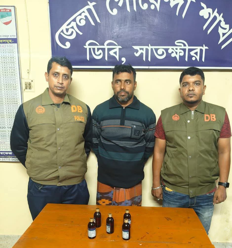 সাতক্ষীরা সদরের খবর, জেলা গোয়েন্দা শাখার বিশেষ অভিযানে এক ব্যক্তি মাদকসহ গ্রেপ্তার করা হয়েছে। অভিযানে ৫ বোতল অনুমানিক মাদক উদ্ধার করা হয়েছে, যার অবৈধ বাজারমূল্য আনুমানিক ৩ হাজার টাকা।