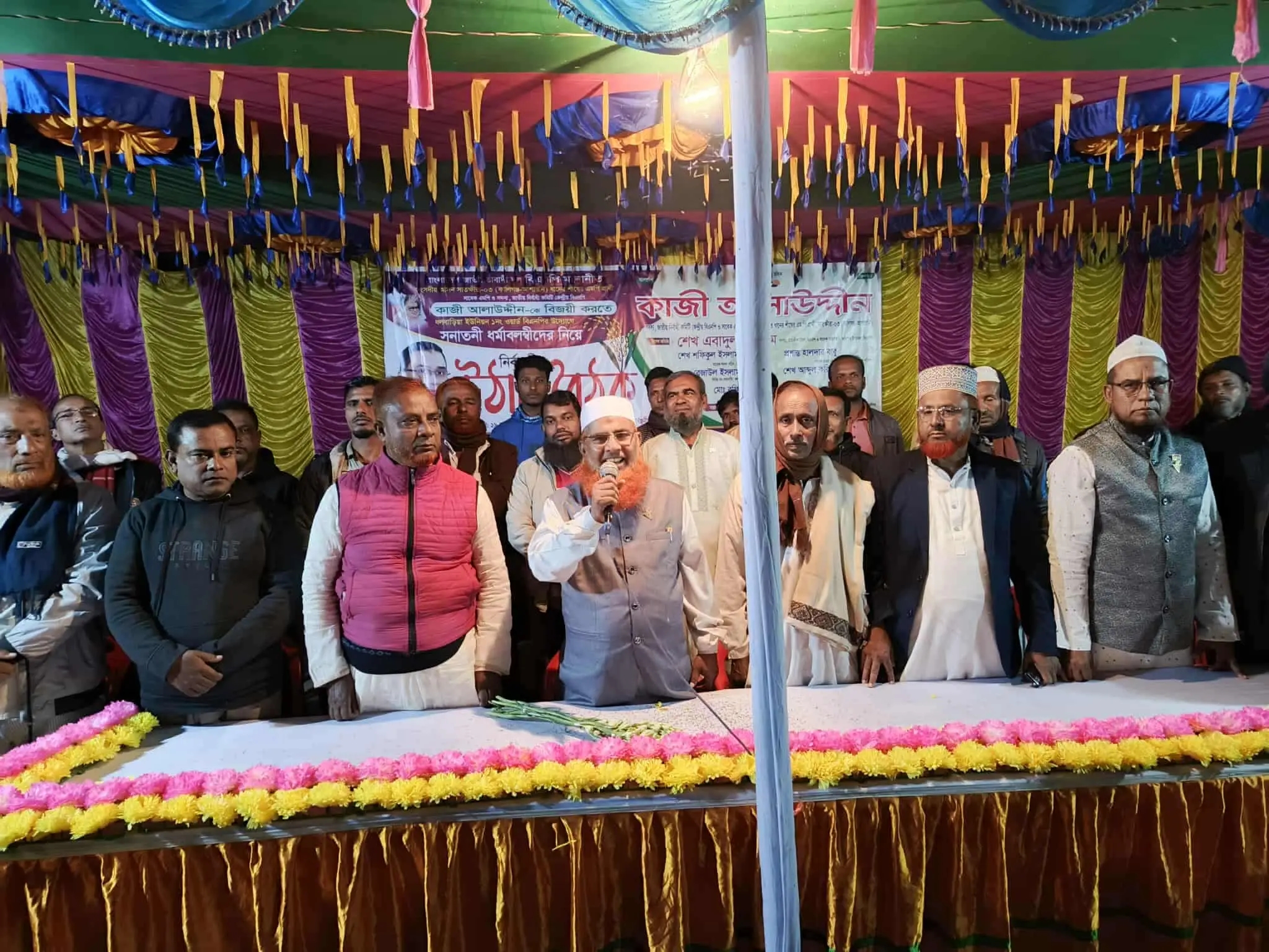 শেখ মনিরুল ইসলাম, সাতক্ষীরা : বিএনপি’র জাতীয় নির্বাহী কমিটির সদস্য ও সাতক্ষীরা-৩ (আশাশুনি-কালিগঞ্জ) আসনের ধানের শীষের মনোনীত প্রার্থী সাবেক সংসদ সদস্য কাজী আলাউদ্দিন বলেছেন, কালিগঞ্জ উপজেলার ধলবাড়িয়া ইউনিয়নের ড্যামরাইল ও মৌখালী এলাকায় আজও পর্যন্ত তেমন কোনো উন্নয়ন হয়নি। তিনি প্রতিশ্রুতি দিয়ে বলেন, “আমি এমপি না হলেও দরমুজখালী থেকে বসন্তপুর পর্যন্ত কার্পেটিং রাস্তা নির্মাণ করে দেবো।” শনিবার (২৯ নভেম্বর) রাতে কালিগঞ্জ উপজেলার ধলবাড়িয়া ইউনিয়নের ড্যামরাইল সার্বজনীন পূজা মন্দিরে অনুষ্ঠিত সনাতন ধর্মাবলম্বীদের উঠান বৈঠকে প্রধান অতিথির বক্তব্যে তিনি এসব কথা বলেন। তিনি বলেন, “আমি আপনাদের সঙ্গে নিয়ে কালিগঞ্জ উপজেলাকে সন্ত্রাস ও চাঁদাবাজ মুক্ত করতে চাই। একটি দল ধর্মকে পুঁজি করে ভোট চাইবে, কিন্তু আমি এলাকার সন্তান— আমার কাছে যেতে কোন দালাল ধরতে হবে না। দিন-রাত ২৪ ঘন্টা আমার দরজা সবার জন্য খোলা থাকবে। সাবেক এমপি আরও বলেন, “আমি নির্বাচিত হলে আপনারা সরাসরি আমার কাছে গিয়ে এলাকার সমস্যা তুলে ধরবেন, আমি সমাধানের চেষ্টা করব। কালিগঞ্জের উন্নয়নে অতীতে অনেক ভূমিকা রেখেছি। ২০০১ সালে সংসদ সদস্য থাকা কালে উপজেলার প্রতিটি মন্দির, মসজিদ, মাদ্রাসা ও শিক্ষাপ্রতিষ্ঠানে অনুদানসহ ভবন নির্মাণে সহায়তা করেছি। এই অবহেলিত এলাকার প্রতিটি ধর্মীয় প্রতিষ্ঠানের পাশে আমি থাকবো। ড্যামরাইল সার্বজনীন মন্দির কমিটির সভাপতি ভগেন্দ্রনাথ বর্মনের সভাপতিত্বে এবং উপজেলা কৃষকদলের আহ্বায়ক হাফিজুর রহমান শিমুলের সঞ্চালনায় অনুষ্ঠানে বক্তব্য রাখেন, কালিগঞ্জ উপজেলা বিএনপির সাবেক সদস্য সচিব ডাঃ শফিকুল ইসলাম বাবু, সহ-সভাপতি মো. রেজাউল ইসলাম , ধলবাড়িয়া ইউনিয়ন বিএনপি সভাপতি আল-মাহমুদ ছট্টু, কৃষ্ণনগর ইউনিয়ন বিএনপির সভাপতি হাসানুর রহমান, কুশুলিয়া ইউনিয়ন বিএনপির সভাপতি মো. রফিকুল ইসলাম বাবু, রতনপুর ইউনিয়ন বিএনপির সভাপতি নাজমুল ইসলাম বাবু, মথুরেশপুর ইউনিয়ন বিএনপির সাধারণ সম্পাদক ফজলুর রহমান, প্রশান্ত হালদার বাবু, সাবেক মেম্বার মো. রফিকুল ইসলাম, শেখ আব্দুল করিম, ভগেন্দ্র নাথ বর্মন প্রমুখ। সভায় বিএনপি চেয়ারপারসন খালেদা জিয়ার রোগমুক্তি কামনায় সবাইকে প্রার্থনা করার আহ্বান জানান কাজী আলাউদ্দিন।