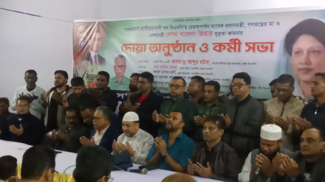 বাংলাদেশ জাতীয়তাবাদী দল বিএনপির চেয়ারপার্সন সাবেক প্রধানমন্ত্রী দেশনেত্রী বেগম খালেদা জিয়ার সুস্থতা কামনায় দোয়া অনুষ্ঠান ও কর্মি সভা অনুষ্টিত হয়েছে।