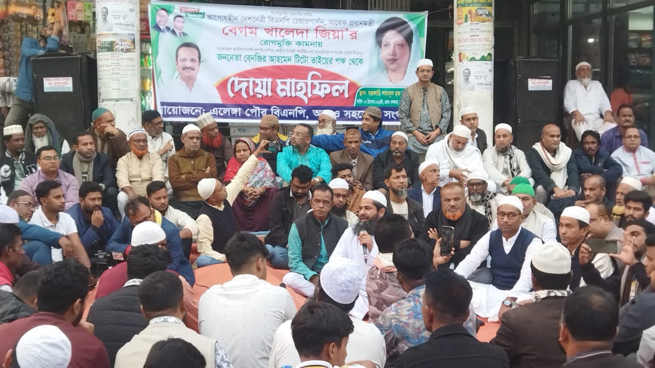 আলোচনা ও দোয়া মাহফিল অনুষ্ঠিত হয়েছে। ২ ডিসেম্বর কলেজ মোড় চত্বরে এলেঙ্গা পৌর বিএনপি এ আয়োজন করে।