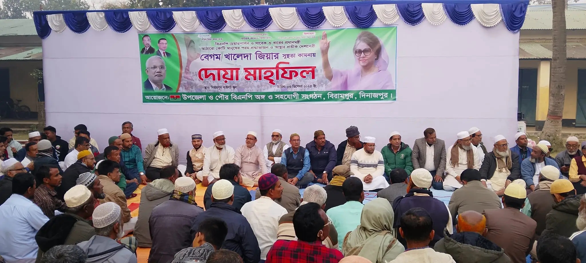 আজ ০৩ ডিসেম্বর ২০২৫ ইং, বুধবার বিকেলে বিরামপুর পাইলট উচ্চবিদ্যালয় প্রাঙ্গণে এই দোয়া মাহফিলের আয়োজন করা হয়।অনুষ্ঠানটি আয়োজনে ছিল উপজেলা ও পৌর বিএনপি অঙ্গ ও সহযোগী সংগঠন,বিরামপুর,দিনাজপুর।
