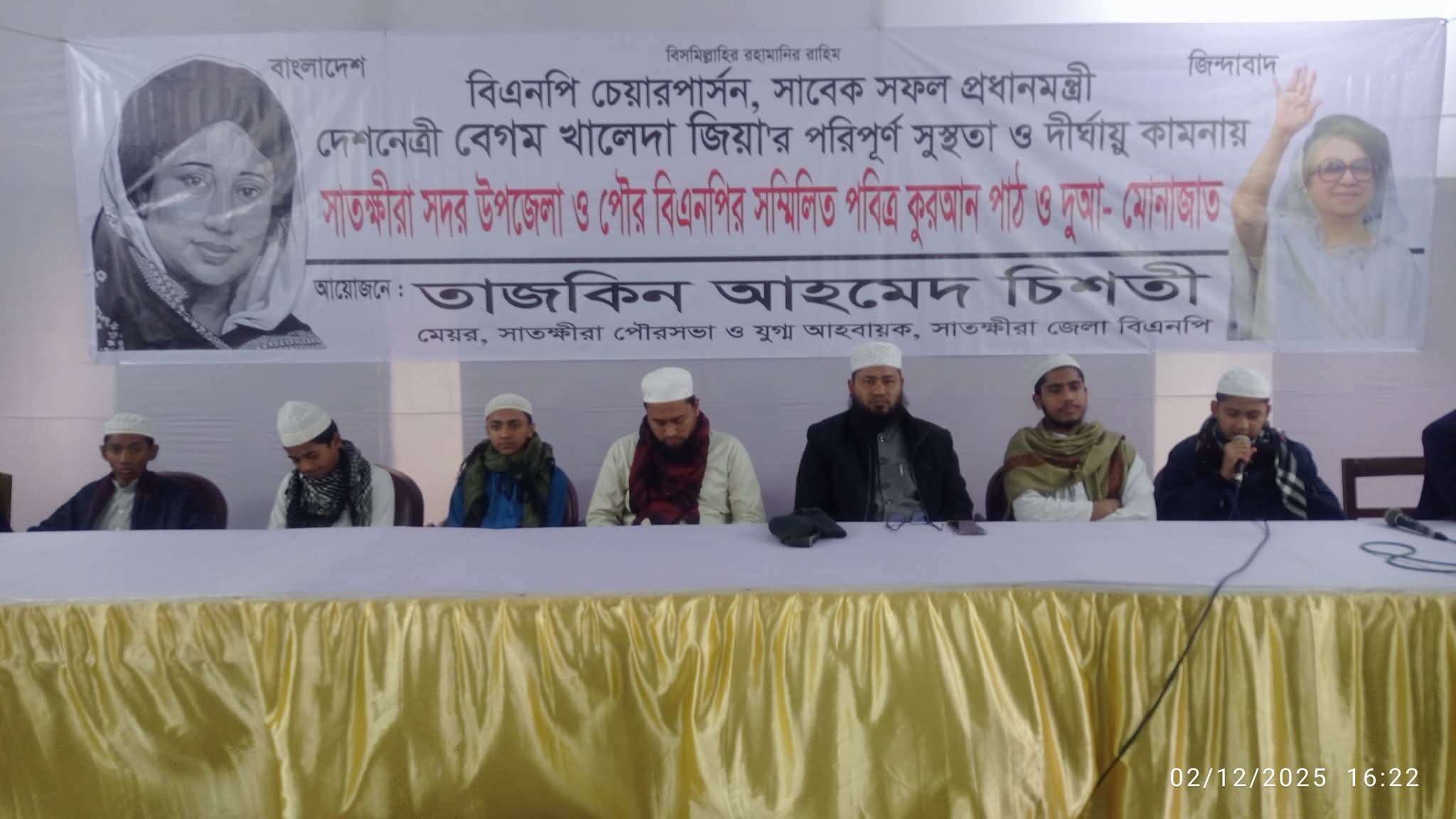 বিএনপি চেয়ারপারসন বেগম খালেদা জিয়ার সুস্থতা কামনায় সাতক্ষীরায় কোরআন তেলাওয়াত ও দোয়া মাহফিল অনুষ্ঠিত হয়েছে।