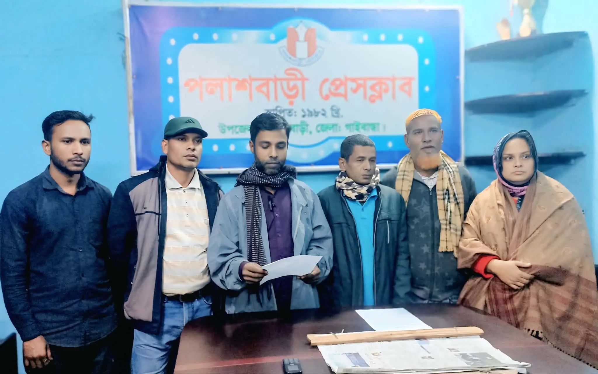 সংবাদ সম্মেলনে পলাশবাড়ীর সুধী সমাজ ও সংশ্লিষ্ট প্রশাসনের কাছে সমস্যাটির ন্যায়সংগত সমাধানে এগিয়ে আসার আহ্বান জানান ভুক্তভোগীরা।