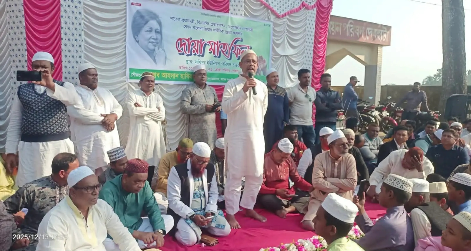 দেবহাটার সখিপুর ইউনিয়ন বিএনপি ও সকল অঙ্গ সহযোগী সংগঠনের আয়োজনে এবং জেলা স্বেচ্ছাসেবক দলের সাবেক সভাপতি আহসান হাবিব টুটুলের সহযোগীতায় বিএনপির চেয়ারপারসন সাবেক ৩বারের প্রধানমন্ত্রী বেগম খালেদা জিয়ার শারীরিক সুস্থতা কামনা করে দোয়ানুষ্টান ও আলোচনা সভা অনুষ্ঠিত হয়েছে। শনিবার ১৩ ডিসেম্বর বাদ যোহর আয়োজিত উক্ত দোয়ানুষ্টানে সভাপতিত্ব করেন সখিপুর ইউনিয়ন বিএনপির সভাপতি এবাদুল ইসলাম। প্রধান অতিথি ছিলেন সাতক্ষীরা জেলা স্বেচ্ছাসেবক দলের সাবেক সভাপতি আহসান হাবিব টুটুল। দেবহাটা উপজেলা স্বেচ্ছাসেবকদলের সিনিয়র যুগ্ম আহবায়ক আহম্মদ আলী ও সখিপুর ইউনিয়ন বিএনপি নেতা শাহিন আলমের যৌথ সঞ্চালনায় দোয়ানুষ্টান ও আলোচনা সভায় অন্যান্যের মধ্যে উপস্থিত ছিলেন ও বক্তব্য রাখেন সাতক্ষীরা জেলা স্বেচ্ছাসেবক দলের সাবেক সিনিয়র সহ-সভাপতি রুহুল কু্দুস, সাংগঠনিক সম্পাদক মাসুদ মোস্তফা সোহেল, দেবহাটা উপজেলা স্বেচ্ছাসেবক দল ও উপজেলা ছাত্রদলের সাবেক সভাপতি শহিদুল ইসলাম, দেবহাটা উপজেলা বিএনপির সাধারন সম্পাদক প্রার্থী সাবেক উপজেলা যুবদলের সাধারণ সম্পাদক আব্দুল হাবিব মন্টু, দেবহাটা উপজেলা বিএনপির সাবেক যুগ্ম আহবায়ক মোখলেছুর রহমান মুকুল, দেবহাটা উপজেলা বিএনপির সাবেক কোষাধ্যক্ষ সাবেক চেয়ারম্যান রেজাউল করিম, দেবহাটা উপজেলা বিএনপির সাবেক যুগ্ম আহবায়ক জাকির হোসেন, দেবহাটা কলেজের সাবেক ভারপ্রাপ্ত অধ্যক্ষ বিএনপি নেতা হাফিজুর রহমান, আলীপুর ইউনিয়ন বিএনপির সাধারন সম্পাদক হাদিউজ্জামান বাদশা, সখিপুর ইউনিয়ন বিএনপির সাধারন সম্পাদক আবুল হোসেন বকুল, সাংগঠনিক সম্পাদক মিজানুর রহমান, দেবহাটা উপজেলা জিয়া পরিষদের সাংগঠনিক সম্পাদক রেজাউল করিম বাপ্পা, দপ্তর সম্পাদক সাংবাদিক সিরাজুল ইসলাম, পারুলিয়া ইউনিয়ন বিএনপি নেতা নজরুল ইসলাম, জেলা শ্রমিকদলের যুগ্ম আহবায়ক ইউপি সদস্য মোখলেছুর রহমান, দেবহাটা উপজেলা যুবদলের যুগ্ম আহবায়ক আলতাফ হোসেন, দেবহাটা উপজেলা ছাত্রদলের আহবায়ক ইমরান ফরহাদ, উপজেলা স্বেচ্ছাসেবক দলের যুগ্ম আহবায়ক সাইদুর রহমান মিন্টু, বিএনপি নেতা শাহজাহান আলীসহ বিএনপির শতশত নেতাকর্মীবৃন্দ। শেষে সাবেক প্রধানমন্ত্রী বেগম খালেদা জিয়ার সুস্থতা কামনা ও উপজেলা বিএনপিসহ দেশের সকল নিহত নেতাকর্মীদের রুহের মাগফেরাত কামনা করে দোয়া ও মোনাজাত পরিচালনা করেন সখিপুর বাজার মসজিদের পেশ ইমাম ও খতিব মাওলানা কামরুজ্জামান সাঈদী।