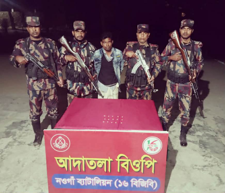 বিজিবি ১৬ ব্যাটালিয়ন (নওগাঁ) সূত্রে জানা যায়, গোপন সংবাদের ভিত্তিতে বৃহস্পতিবার রাতে আদাতলা বিওপির টহল কমান্ডার হাবিলদার মো. আবুল কালাম আজাদের নেতৃত্বে বিজিবির একটি বিশেষ টহল দল সীমান্ত এলাকায় অভিযান পরিচালনা করে। এ সময় সরলী গ্রামের নাইমুলের আম বাগানের ভেতর থেকে আতাউর রহমানকে আটক করা হয়। পরে তার কাছ থেকে ১৫ পিস ভারতীয় ট্যাপেন্টাডল ট্যাবলেট উদ্ধার করা হয়।