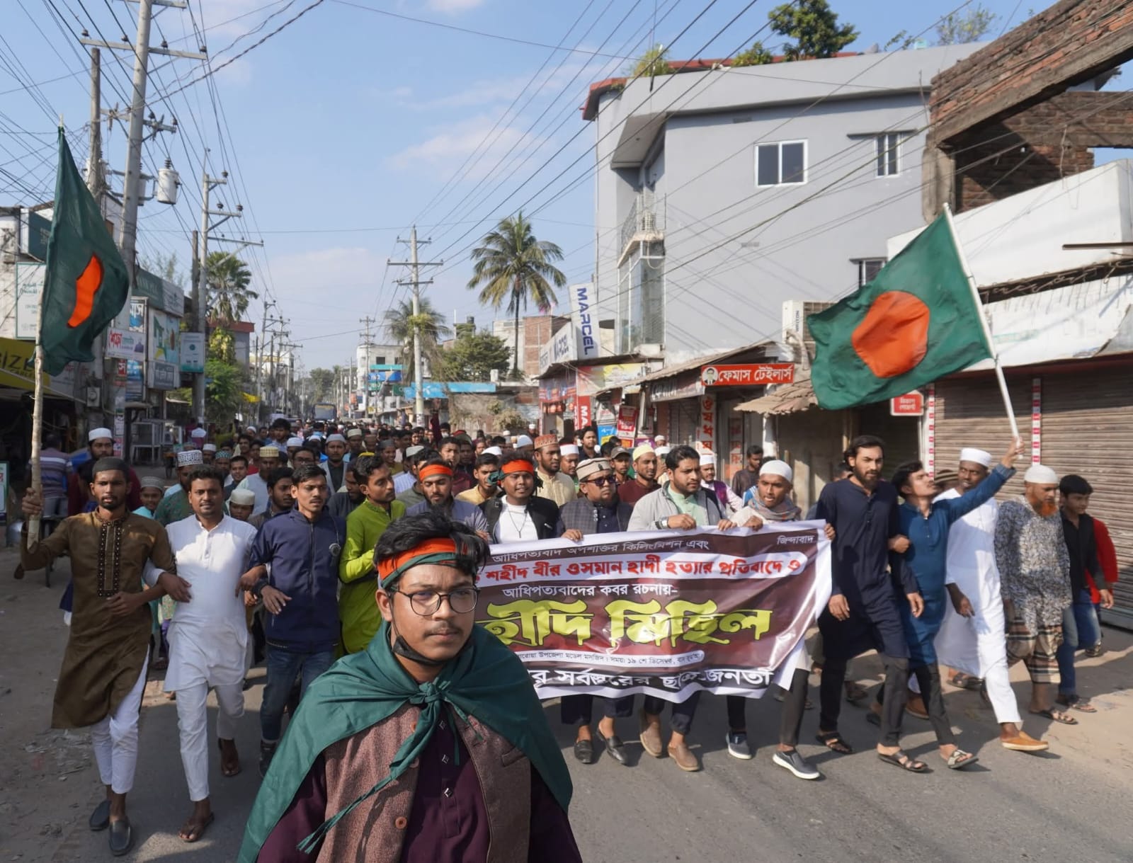 মিছিল শেষে উপজেলা গেটের সামনে ব্যানার ও ফেস্টুন হাতে এক সংক্ষিপ্ত প্রতিবাদ সমাবেশ অনুষ্ঠিত হয়। সমাবেশে বক্তারা শহীদ শরিফ ওসমান হাদির হত্যার তীব্র নিন্দা ও প্রতিবাদ জানিয়ে অবিলম্বে হত্যাকারীদের গ্রেপ্তার ও দৃষ্টান্তমূলক শাস্তির দাবি জানান।