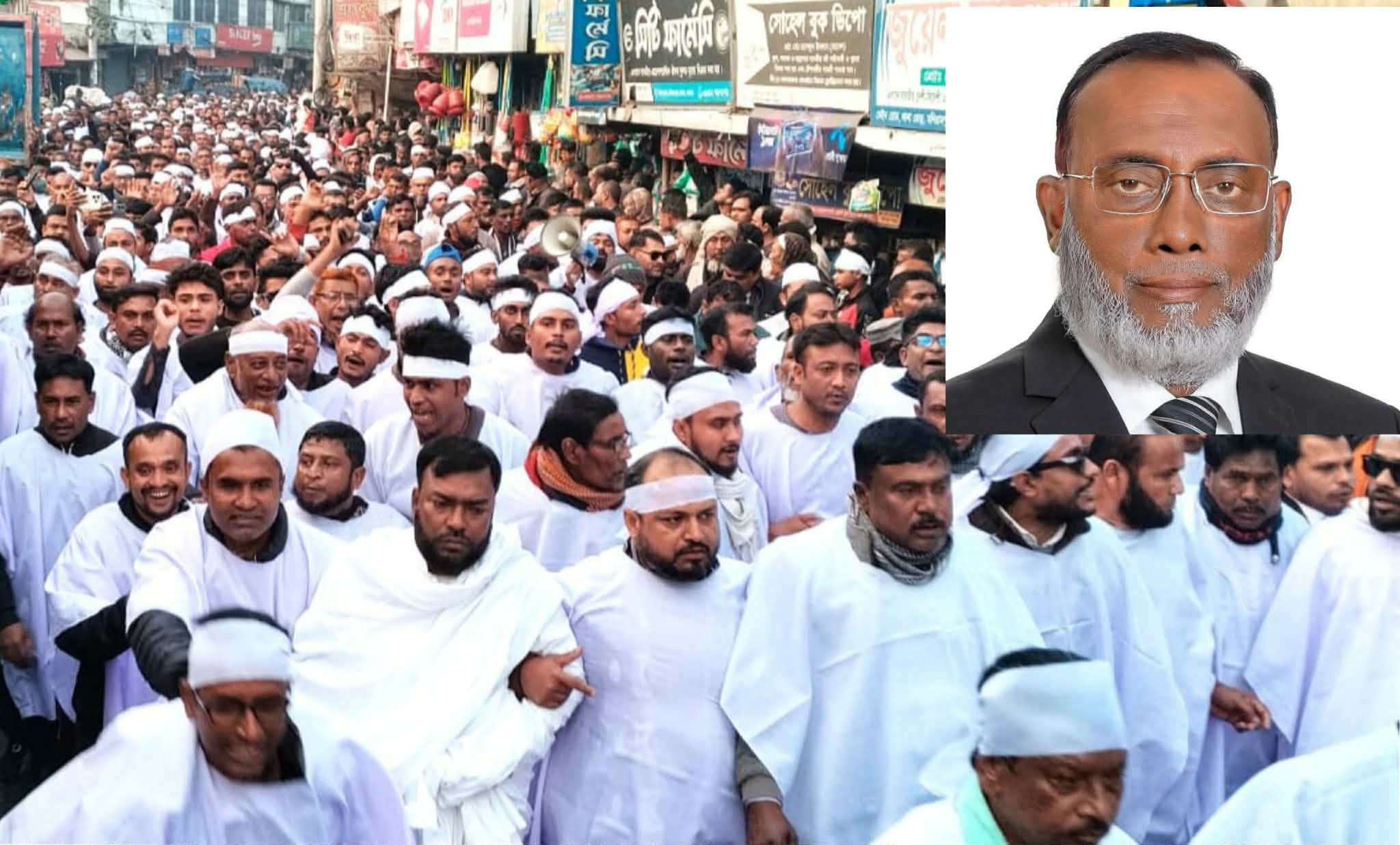 শনিবার বিকেলে পৌরশহরে হাজার হাজার নেতাকর্মী সমর্থকরা কাফনের কাপড় পরে বিক্ষোভ মিছিল করে। পরে কেন্দ্রীয় মসজিদের সামনে সমাবেশ করে। পৌর বিএনপির সভাপতি খায়রুল ইসলামের সভাপতিত্বে বক্তব্য রাখেন উপজেলা বিএনপির সাধারন সম্পাদক আসাদুজ্জামান মিন্টু, পৌর বিএনপির সাধারন সম্পাদক আব্দুল হাই, উপজেলা বিএনপির সহসভাপতি মফিজুর রহমান, সদর ইউপি চেয়ারম্যান নিস্তার ফারুক, সাংগঠনিক সম্পাদক খান শফিয়ার রহমান, জাহাঙ্গীর বিশ্বাস প্রমুখ। সমাবেশে বিএনপি নেতৃবৃন্দ বলেন, এ আসনে বিজয়ী হতে হলে জমিয়তের গণবিচ্ছিন্ন রশিদ বিন ওয়াক্কাসের পরিবর্তে বিএনপির সভাপতি জনপ্রিয় নেতা শহীদ ইকবালকে মনোনীত করতে হবে। অন্যথায় আরো কঠিন কর্মসূচি পালন করা হবে।