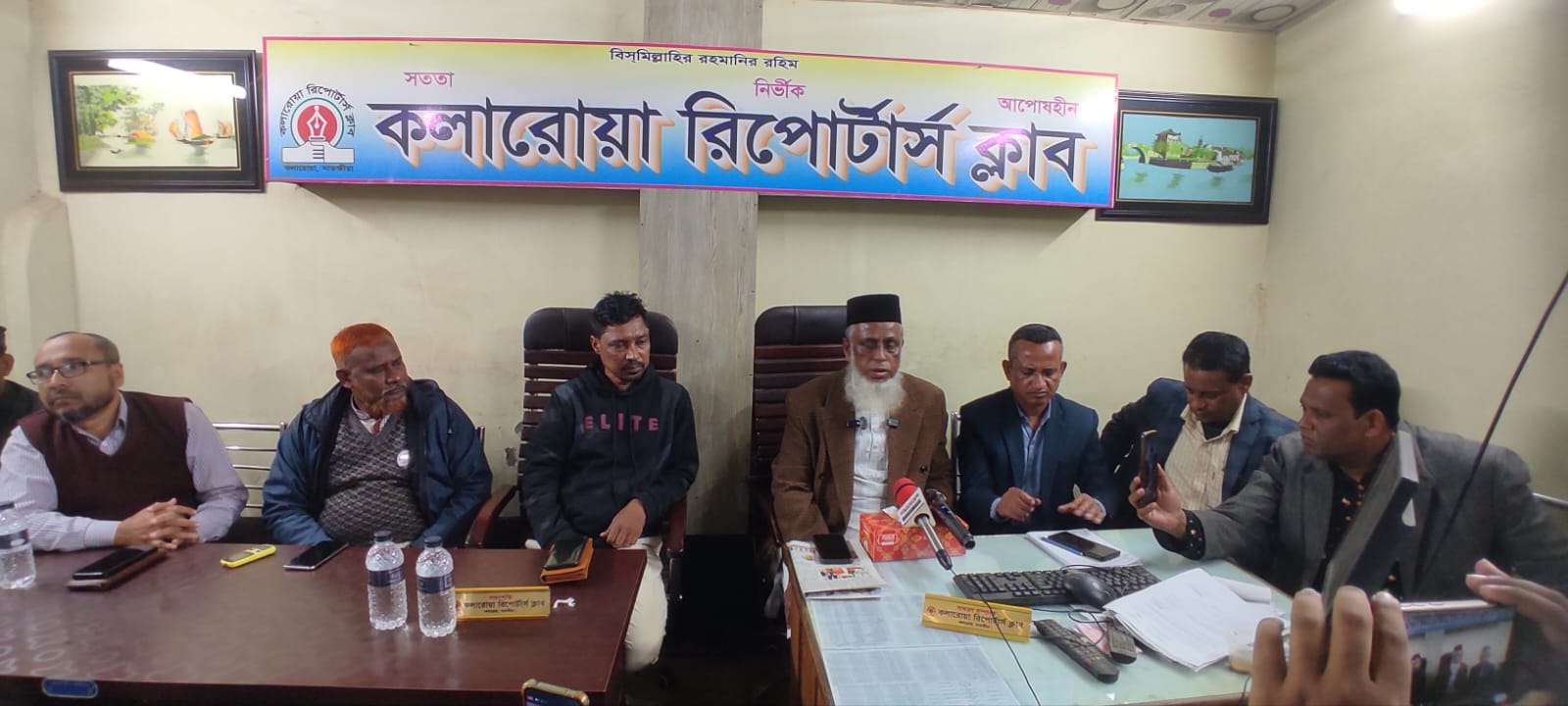 আসন্ন জাতীয় সংসদ নির্বাচনে সাতক্ষীরা-১ (তালা–কলারোয়া) আসনে বাংলাদেশ জামায়াতে ইসলামীর মনোনীত সংসদ সদস্য প্রার্থী অধ্যক্ষ মুহাম্মদ ইজ্জত উল্লাহ কলারোয়া রিপোর্টার্স ক্লাবের সাংবাদিকদের সঙ্গে মতবিনিময় করেছেন।