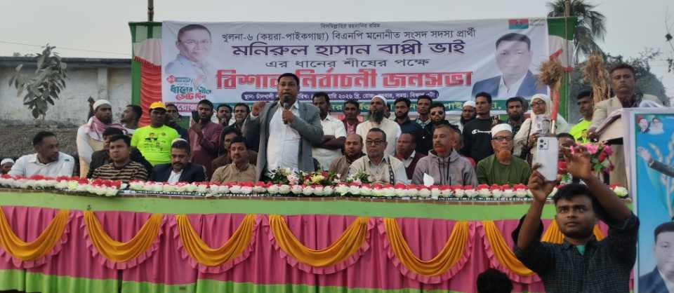 চাঁদখালী ইউনিয়ন বিএনপির সভাপতি সরদার আলাউদ্দীন মাষ্টারের সভাপতিত্বে অনুষ্ঠিত জনসভায় প্রধান অতিথি হিসেবে বক্তব্য রাখেন খুলনা-৬ (পাইকগাছা-কয়রা) আসনের বিএনপি মনোনীত প্রার্থী এসএম মনিরুল হাসান বাপ্পী।