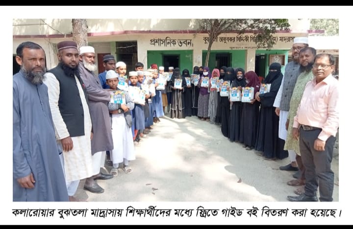 জুলফিকার আলী, কলারোয়া (সাতক্ষীরা) প্রতিনিধি : কলারোয়ার বুঝতলা মাদ্রাসার শিক্ষার্থীদের বই পড়ার প্রতি আগ্রহ ও মনোযোগি হতে সহায়ক বই উপহার দিলেন শিক্ষা অনুরাগী ও বিশিষ্ট সমাজসেবক আহসান কবির টুটুল। এ উপলক্ষে রোববার (৮ফেব্রুয়ারি ২৬) সকাল ১০টার দিকে কলারোয়ার বুঝতলা আবু বকর সিদ্দিকী আলিম মাদ্রাসার ষষ্ঠ শ্রেণির শিক্ষার্থীদের মধ্যে ওই সহায়ক বই বিতরণ করা হয়। বই বিতরণ কালে উপস্থিত ছিলেন-শিক্ষা অনুরাগী ও বিশিষ্ট সমাজসেবক আহসান কবির টুটুলের ছোট ভাই উপসহকারী কৃষি কর্মকর্তা মাহফুল উল কবীর, কলারোয়ার বুঝতলা আবু বকর সিদ্দিকী আলিম মাদ্রাসার অধ্যক্ষ মোঃ আব্দুল হাই, উপাধ্যক্ষ আব্দুল মালেক প্রভাষক এটিএম রুল কুদ্দুস, জাহাঙ্গীর হোসেন, দেলোয়ার হোসেন, শাহজাহান আলী, আব্দুস সালাম, আবু আনসার মো: হাদিউজ্জামান, হাসানুজ্জামান, হজ্জাতুল ইসলাম, আজিজুল ইসলাম, আনন্দমোহন রায়, সাবিনা খাতুন, রবিউল ইসলাম, রাইছুল ইসলাম, মেহেদী হাসান, আব্দুর রহিম, সুরায়া ইয়াসমিন, নাজমা খাতুন, মফিজুল ইসলাম, সাইফুর রহমান, কোরবান আলী প্রমুখ। উল্লেখ্য এর আগে বুঝতলা মাদ্রাসায় শিক্ষা অনুরাগী সমাজসেবক আহসানুল কবিব টুটুলের উদ্যোগে মাদ্রাসা ভবণে ৩৫ হাজার ইট, ডিকশনারি ও তার পরিবারের পক্ষ থেকে জমি প্রদান করেন বলে মাদ্রাসার অধ্যাক্ষ আব্দুল হাই জানিয়েছেন। এদিকে ষষ্ঠ শ্রেণীর শিক্ষার্থীরা ফ্রিতে সহায়ক বই পেয়ে খুশিতে মাতোয়ার।