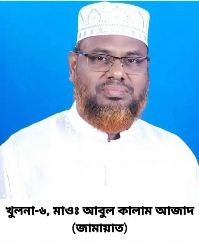 শেখ খায়রুল ইসলাম পাইকগাছা (খুলনা) প্রতিনিধি:-খুলনা-৬ (পাইকগাছা–কয়রা) আসনে ত্রয়োদশ জাতীয় সংসদ নির্বাচনে বাংলাদেশ জামায়াতে ইসলামীর প্রার্থী মাওলানা আবুল কালাম আজাদ দাড়িপাল্লা প্রতীকে বিজয়ী হয়েছেন। তিনি বিএনপির প্রার্থী এস এম মনিরুল হাসান বাপ্পীকে ২৫ হাজার ৪৪৩ ভোটের ব্যবধানে পরাজিত করেন।বেসরকারি ফলাফল অনুযায়ী, বিজয়ী প্রার্থী মাওলানা আবুল কালাম আজাদ পেয়েছেন ১ লাখ ৪৮ হাজার ৯৫৬ ভোট। তার নিকটতম প্রতিদ্বন্দ্বী ধানের শীষ প্রতীকের প্রার্থী এস এম মনিরুল হাসান বাপ্পী পেয়েছেন ১ লাখ ২৩ হাজার ৫১৩ ভোট।অন্যদিকে, বাংলাদেশ কমিউনিস্ট পার্টির প্রার্থী অ্যাডভোকেট প্রশান্ত কুমার মণ্ডল (কাস্তে) পেয়েছেন ১ হাজার ৫০২ ভোট, ইসলামী আন্দোলন বাংলাদেশের প্রার্থী আসাদুল ফকির (হাতপাখা) পেয়েছেন ২ হাজার ৯২৮ ভোট এবং জাতীয় পার্টির প্রার্থী মোস্তফা কামাল জাহাঙ্গীর (লাঙ্গল) পেয়েছেন ২ হাজার ৬৭২ ভোট।নির্বাচন কমিশন সূত্রে জানা গেছে, খুলনা-৬ আসনে মোট ভোটকেন্দ্র ছিল ১৫৫টি। মোট ভোটার সংখ্যা ৪ লাখ ২৩ হাজার ৩৩১ জন। এর মধ্যে পুরুষ ভোটার ২ লাখ ১২ হাজার ৮৬৯ জন, নারী ভোটার ২ লাখ ১০ হাজার ৪৬১ জন এবং তৃতীয় লিঙ্গের ভোটার ১ জন। মোট প্রাপ্ত ভোট ছিল ২ লাখ ২৭ হাজার ৪১৮টি এবং বাতিল ভোট ছিল ১৬ হাজার ১৯৫টি।