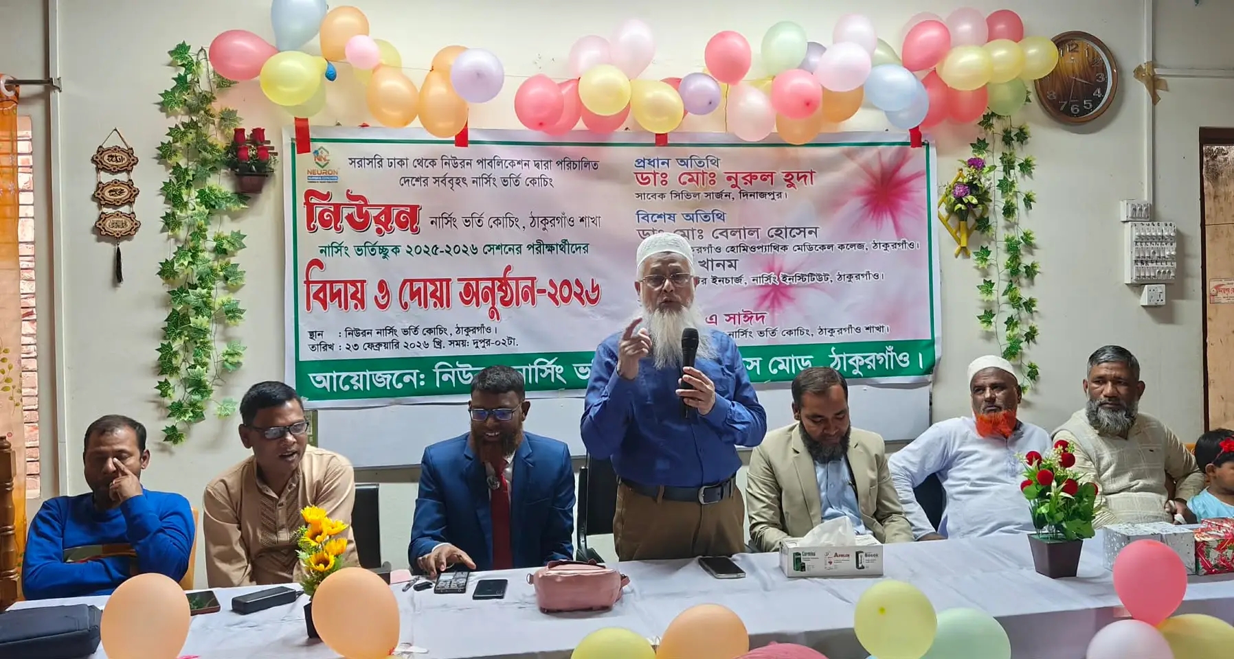ঠাকুরগাঁও জেলা প্রতিনিধি :সরাসরি ঢাকা থেকে পরিচালিত দেশের অন্যতম বৃহৎ নার্সিং ভর্তি কোচিং প্রতিষ্ঠান নিউরন পাবলিকেশন-এর অধীনে পরিচালিত নিউরন নার্সিং ভর্তি কোচিং, ঠাকুরগাঁও শাখার উদ্যোগে নার্সিং ভর্তিচ্ছুক ২০২৫–২০২৬ শিক্ষাবর্ষের পরীক্ষার্থীদের বিদায় ও দোয়া অনুষ্ঠান অনুষ্ঠিত হয়েছে।
