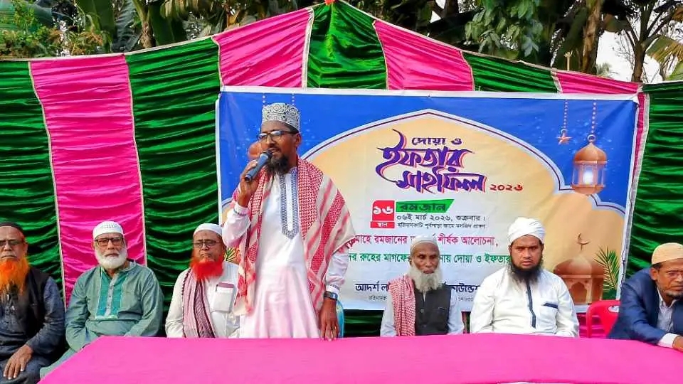 শেখ খায়রুল ইসলাম পাইকগাছা (খুলনা) প্রতিনিধি:-পবিত্র রমজান উপলক্ষে খুলনার পাইকগাছা উপজেলার হরিঢালী ইউনিয়নের হরিদাশকাটী গ্রামে আদর্শ লাইব্রেরি ও আদর্শ ফাউন্ডেশনের উদ্যোগে দোয়া ও ইফতার মাহফিল অনুষ্ঠিত হয়েছে।১৬ রমজান হরিদাশকাটী পূর্বপাড়া জামে মসজিদ প্রাঙ্গণে আয়োজিত অনুষ্ঠানে আদর্শ লাইব্রেরির সভাপতি মোঃ হাসান- উজ-জামানের সঞ্চালনায় সভাপতিত্ব করেন আলহাজ্ব হাফেজ মাওলানা জালাল উদ্দিন।অনুষ্ঠানে প্রধান অতিথি হিসেবে উপস্থিত ছিলেন বিশিষ্ট আলেম আলহাজ্ব হাফেজ আসাদুল্লাহ আল গালিব। বিশেষ অতিথি ও আলোচক হিসেবে বক্তব্য রাখেন আলহাজ্ব মাওলানা ফজলুর রহমান, মুফতি আব্দুল হান্নান, আলহাজ্ব শেখ মুমিন উদ্দিন, মোঃ আলমুন হোসাইন, ইকবাল হোসেন বাবলু, মোঃ হাবিবুর রহমান, গাজী হাবিবুল্লাহ, মোহাম্মদ তোফাজ্জল হোসেন, শেখ আব্দুল গফুর, বিল্লাল হোসেন, মোঃ দিদারুল ইসলাম, শেখ খায়রুল ইসলাম ও মিজানুর রহমান (বালি)।এছাড়াও অনুষ্ঠানে উপস্থিত ছিলেন আদর্শ লাইব্রেরি ও আদর্শ ফাউন্ডেশনের প্রতিষ্ঠাতা মোঃ সাঈদুল ইসলামসহ এলাকার ধর্মপ্রাণ মুসল্লি ও বিভিন্ন শ্রেণি-পেশার মানুষ।বক্তারা পবিত্র রমজান মাসের তাৎপর্য, ইসলামি মূল্যবোধ চর্চা এবং মৃত মুসলমানদের রূহের মাগফিরাত কামনায় দোয়ার গুরুত্ব তুলে ধরেন। আলোচনা শেষে মরহুমদের রূহের মাগফিরাত কামনা করে বিশেষ দোয়া ও মোনাজাত পরিচালনা করেন আলহাজ্ব মাওলানা ফজলুর রহমান।পরে উপস্থিত মুসল্লি ও অতিথিদের মাঝে ইফতার পরিবেশন করা হয়। অনুষ্ঠানের সার্বিক ব্যবস্থাপনা পরিচালনা করেন আদর্শ লাইব্রেরির স্বেচ্ছাসেবক সদস্যরা।উপস্থিত অতিথিরা আশা প্রকাশ করেন, এ ধরনের ধর্মীয় আয়োজন এলাকায় ভ্রাতৃত্ববোধ ও সামাজিক সম্প্রীতি বৃদ্ধিতে গুরুত্বপূর্ণ ভূমিকা রাখবে।