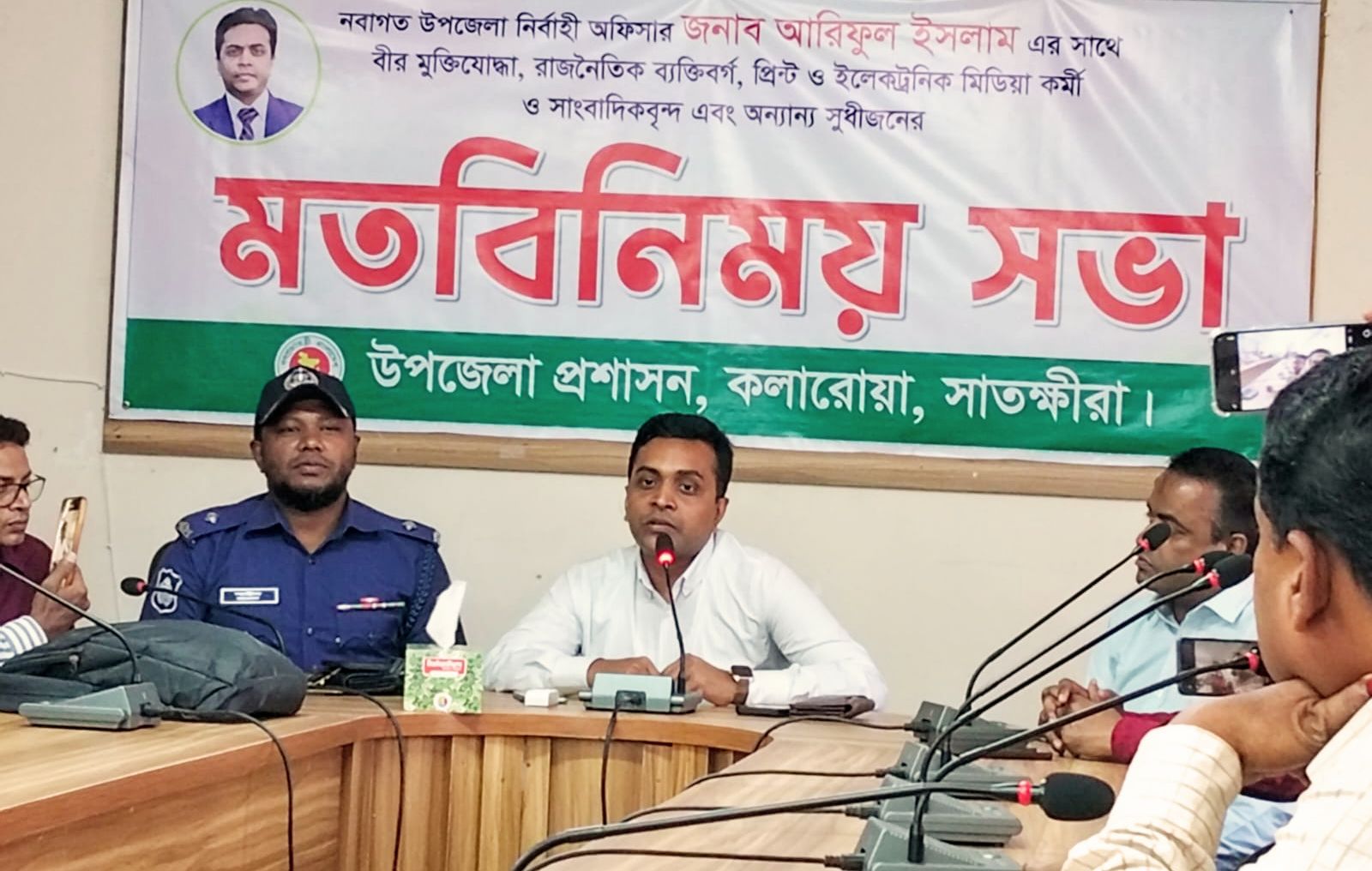 কলারোয়ায় নবাগত উপজেলা নির্বাহী অফিসার (ইউএনও) মোঃ আরিফুল ইসলাম-এর সঙ্গে স্থানীয় সাংবাদিকদের এক গুরুত্বপূর্ণ মতবিনিময় সভা অনুষ্ঠিত হয়েছে।