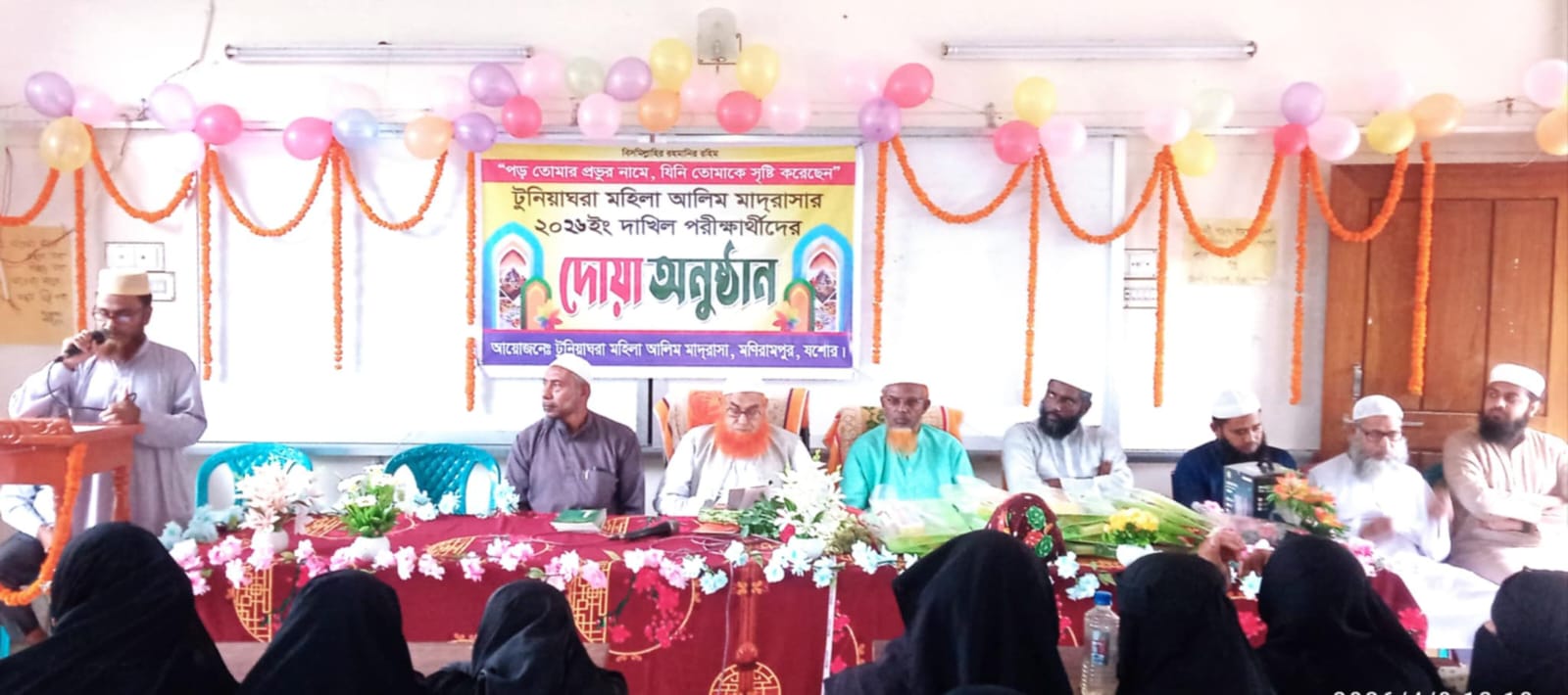 জেলা প্রতিনিধি, যশোর : মণিরামপুরের ঐতিহ্যবাহি টুনিয়াঘরা মহিলা আলিম মাদ্রাসার ২০২৬ সালের দাখিল (এসএসসি) পরীক্ষার্থীদের বিদায় অনুষ্ঠান ও দোয়া মাহফিল অনুষ্ঠিত হয়েছে। বৃহষ্পতিবার দুপুরে শিক্ষা প্রতিষ্ঠানটির নিজস্ব হলরুমে অনুষ্ঠিত বিদায় অনুষ্ঠান ও দোয়া মাহফিলে সভাপতিত্ব করেন টুনিয়াঘরা মহিলা আলিম মাদ্রাসার পরিচালনা পর্ষদের সভাপতি সহকারী অধ্যাপক আব্দুল কাদের। অনুষ্ঠানে স্বাগত বক্তব্য রাখেন অধ্যক্ষ এ, এইচ এম, হাবিবুর রহমান।