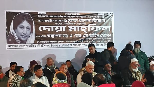 আজহারুল ইসলাম সাদী, স্টাফ রিপোর্টারঃ সাবেক প্রধানমন্ত্রী ও বিএনপি চেয়ারপার্সন বেগম খালেদা জিয়ার রুহের মাগফিরাত কামনায় সাতক্ষীরায় কোরআন খতম ও দোয়া মাহফিল অনুষ্ঠিত হয়েছে। শনিবার (১০ জানুয়ারী) বিকালে শহরের