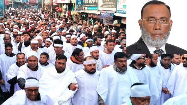 নূরুল হক, মণিরামপুর: যশোর-৫ (মণিরামপুর) আসনে পূর্ব ঘোষিত বিএনপির অ্যাড. শহীদ ইকবাল হোসেনের মনোনয়ন পুনর্বহালের দাবিতে এবার নেতাকার্মীরা কাফন পরে বিক্ষোভ মিছিল ও সমাবেশ করেছে। শনিবার বিকেল সাড়ে চারটার দিকে